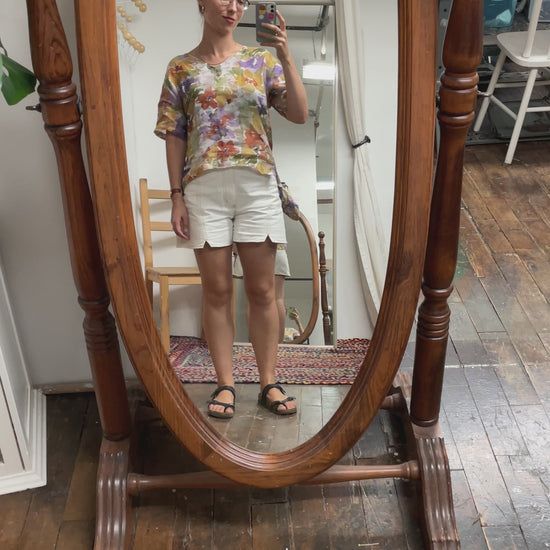Our Manvi Front Slit Shorts are made from premium 12oz Japanese denim, and feature intricate panels with topstitching details. **Hem style has been changed from the product photoshoot, and now features a finished hem. Please see product video.**