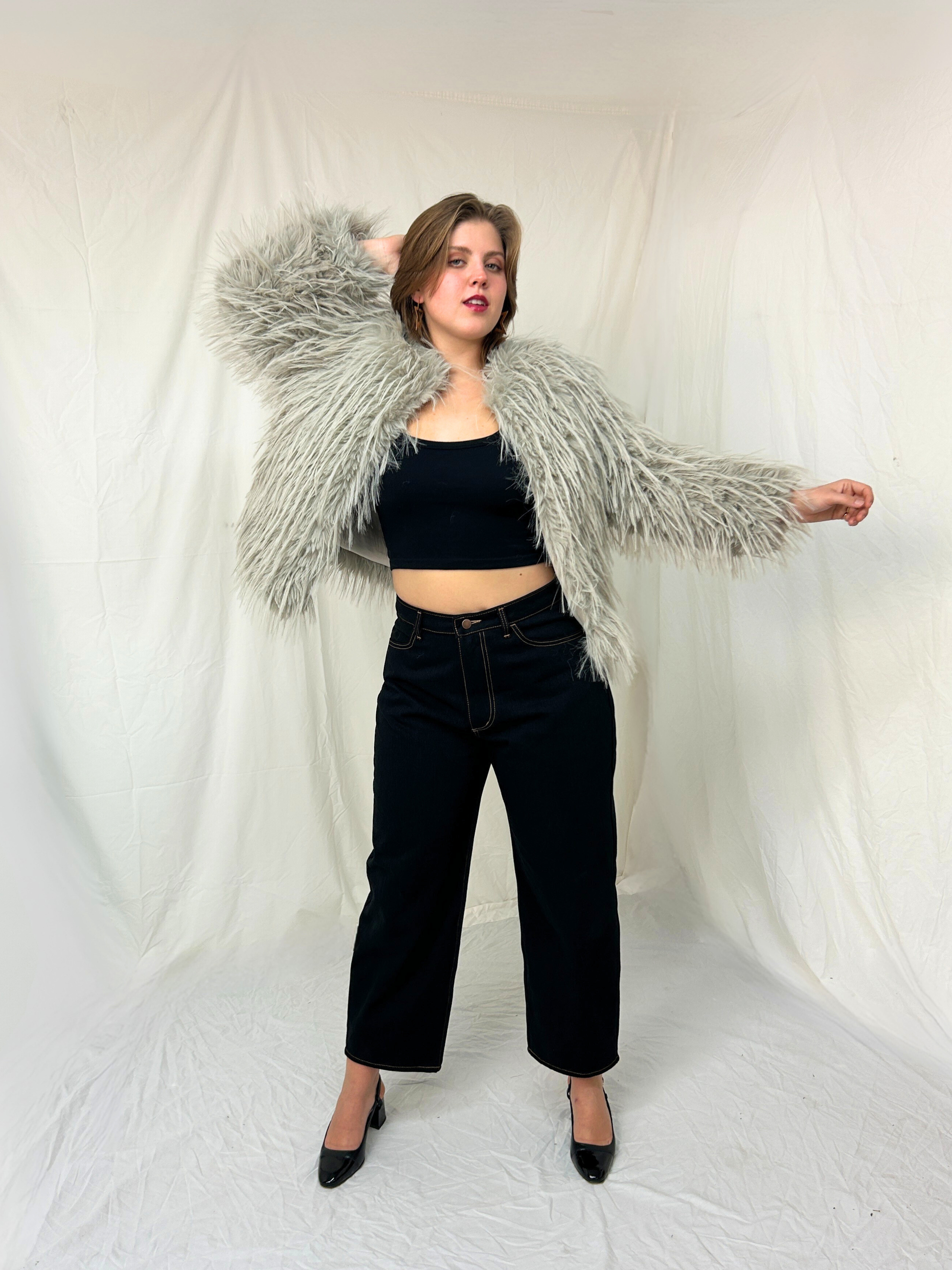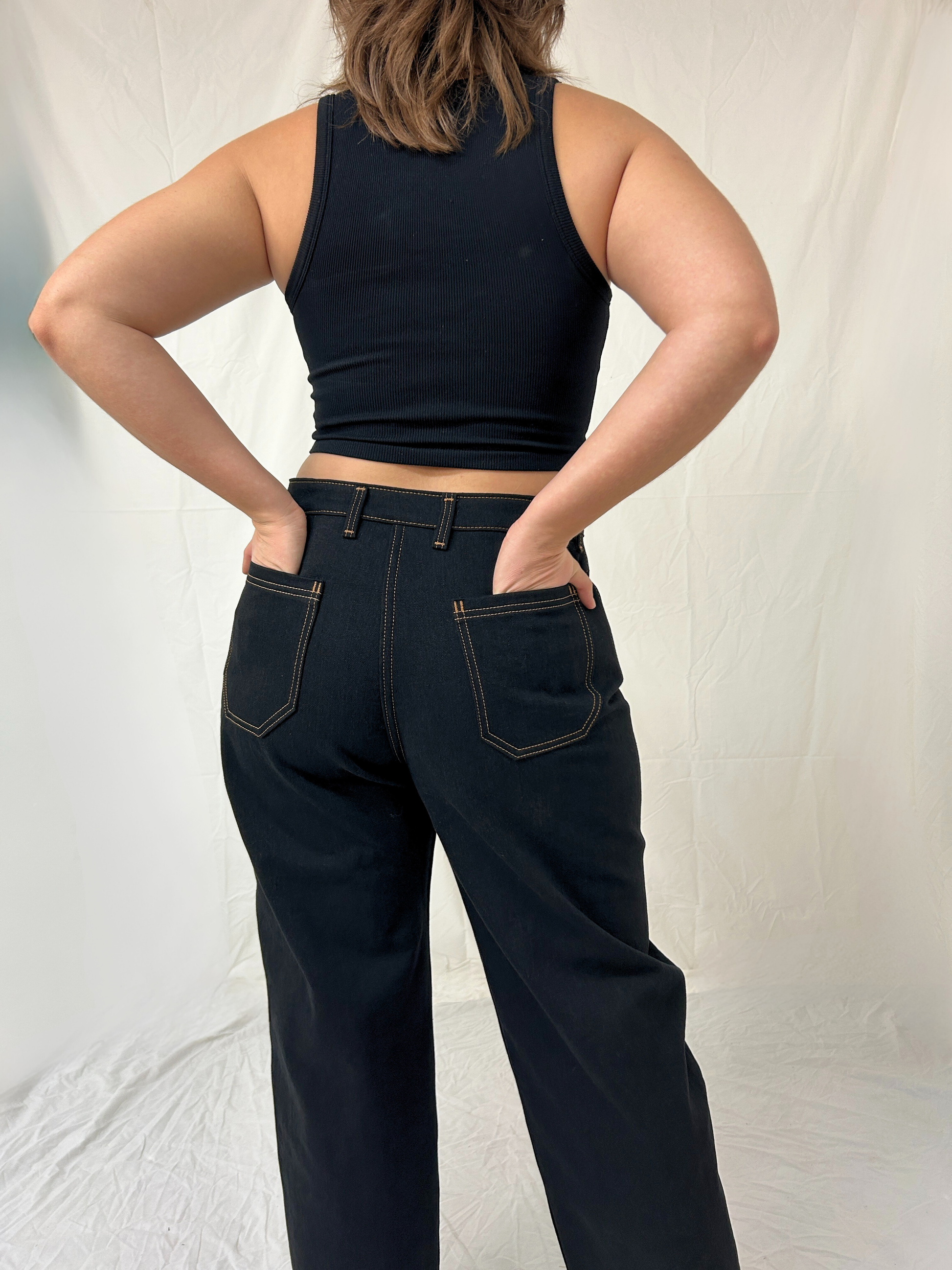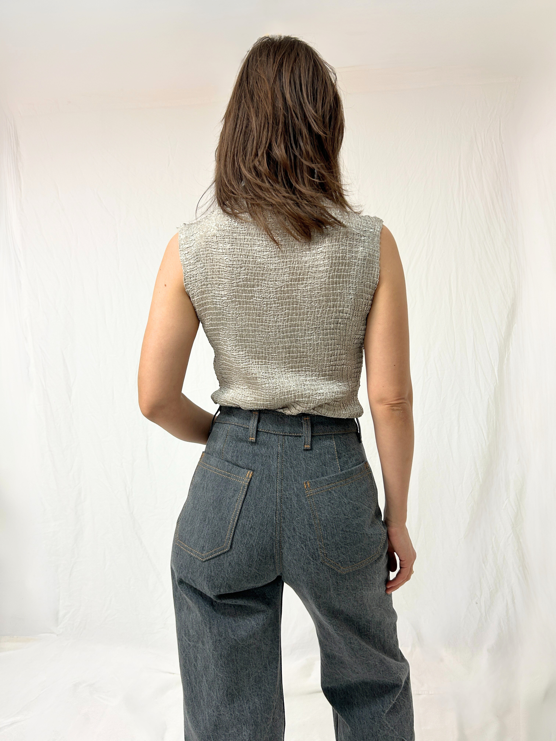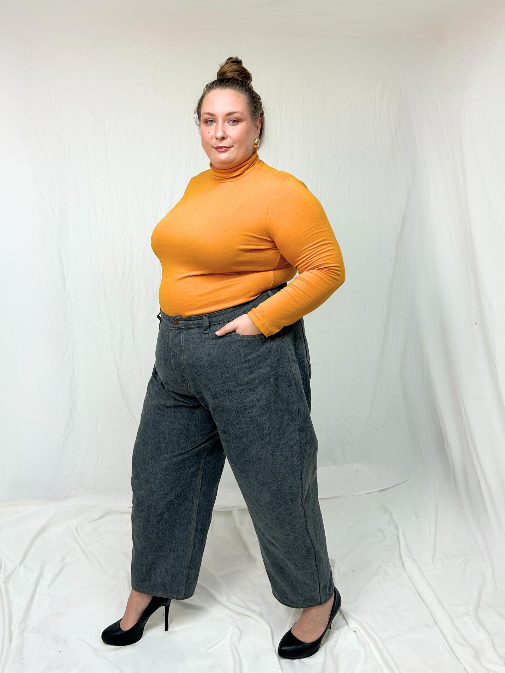Our Billie Barrel Leg jeans are made from premium, 100% cotton denim. They feature a barrel leg silhouette, with a fitted waist, and an outwardly curved shape that finishes with a taper at the ankle. These jeans are made in our Toronto studio, and are built to last using 13 oz denim. These jeans are available in two colourways: black or stonewashed grey.