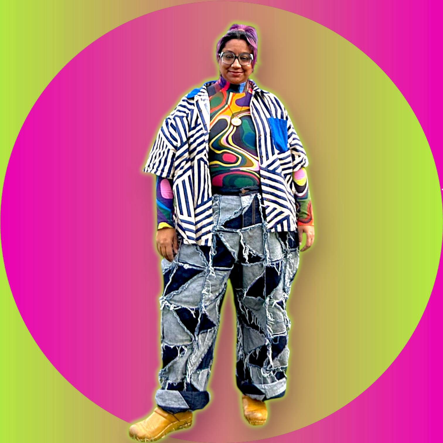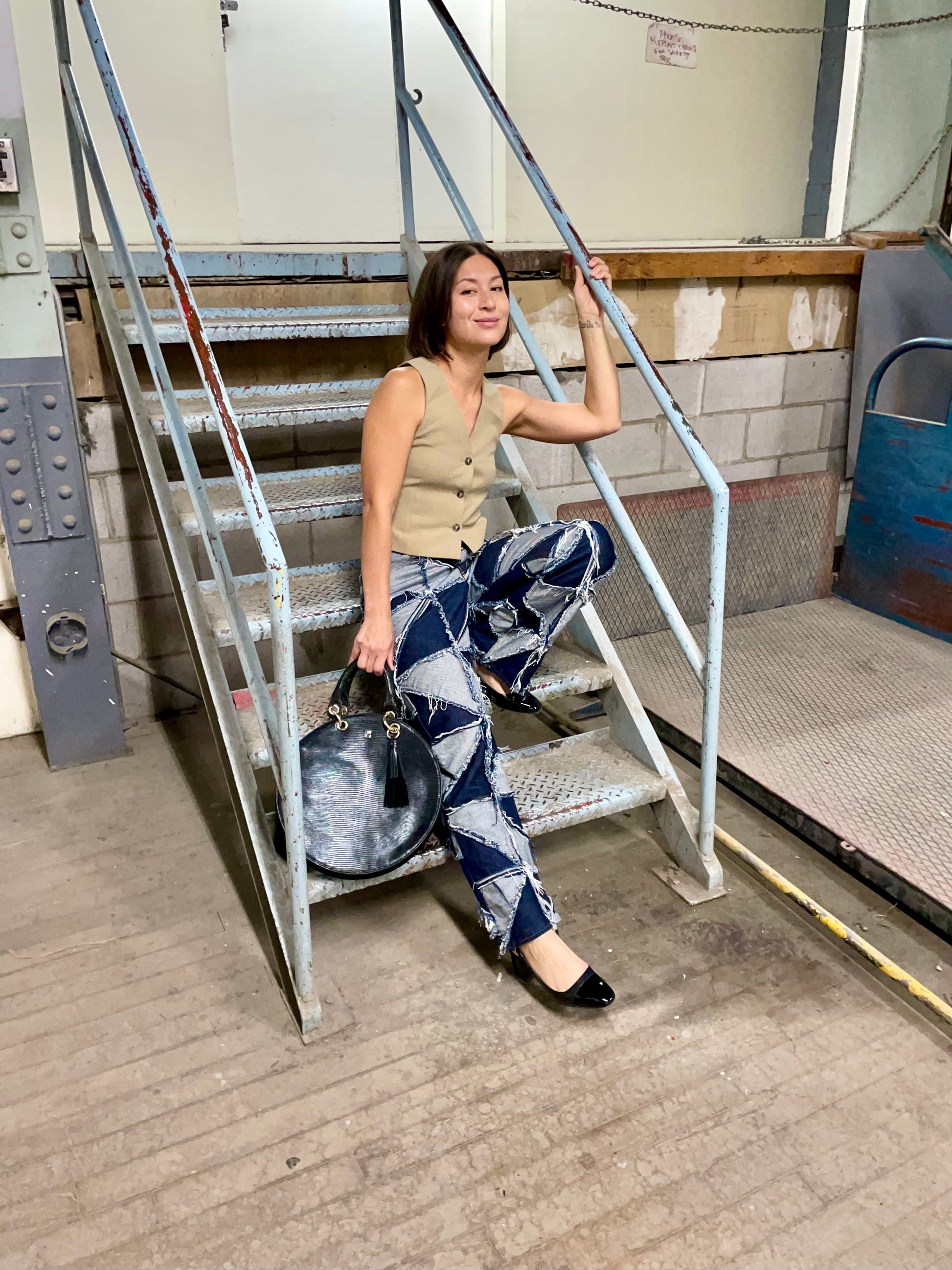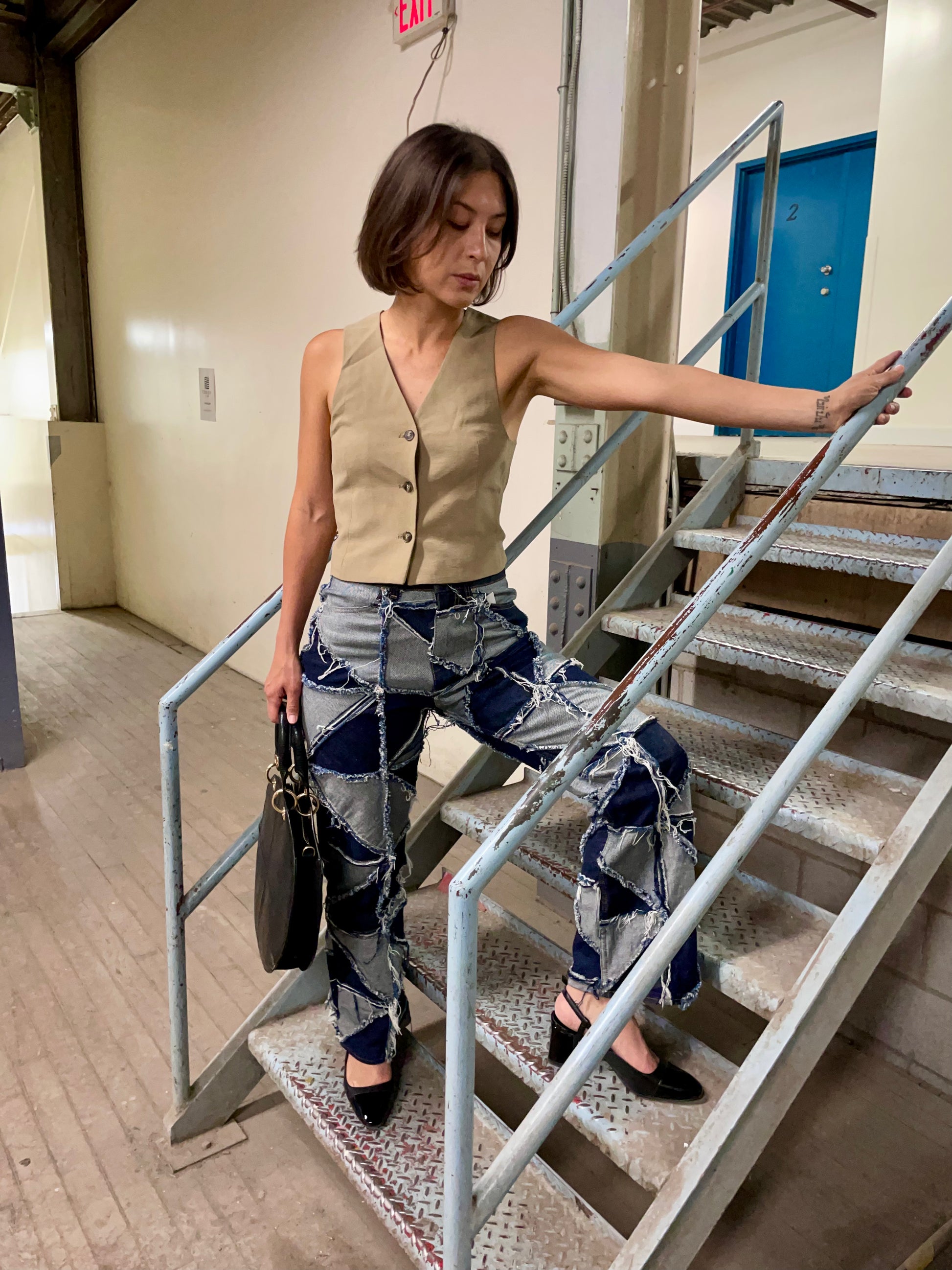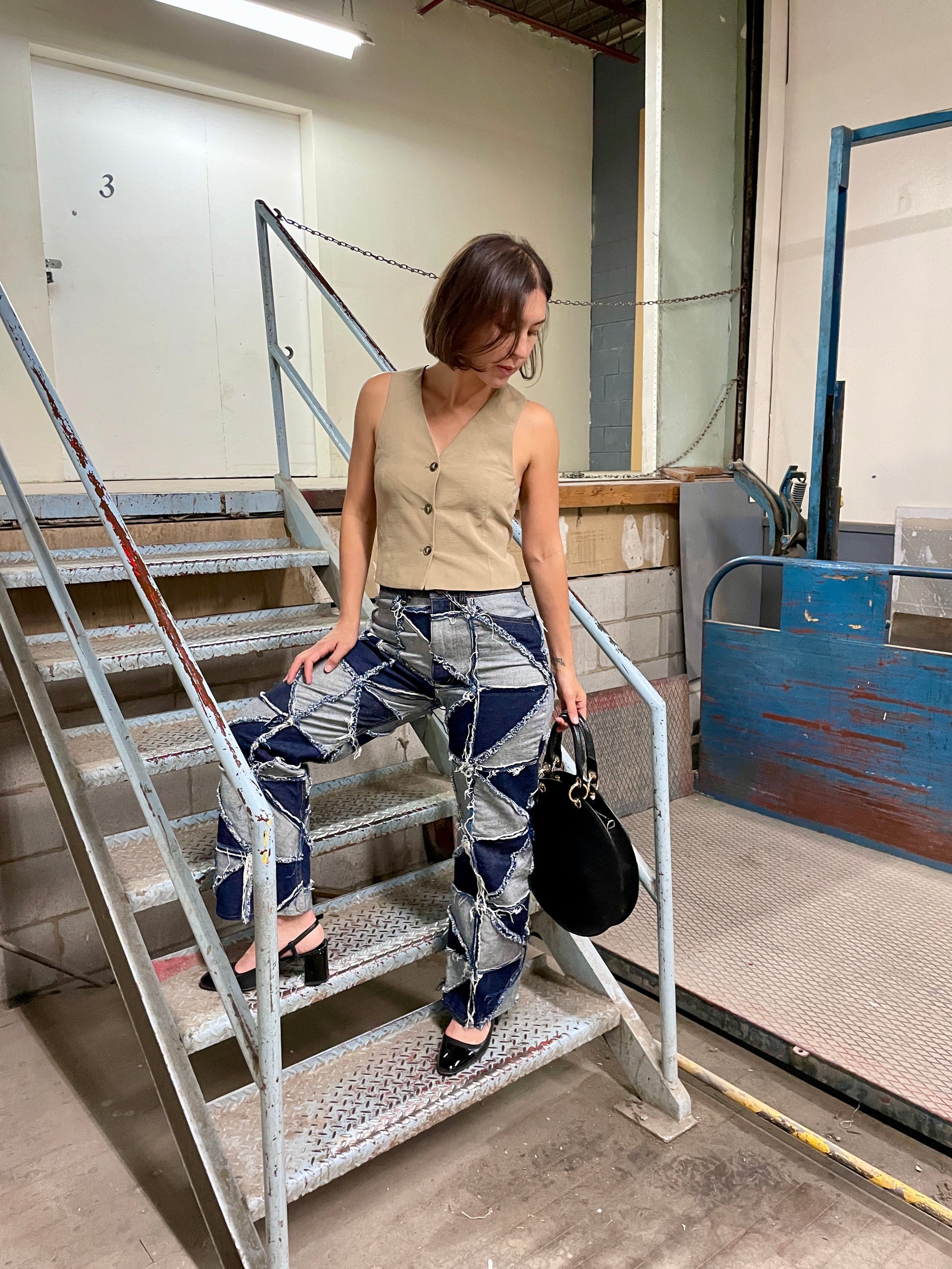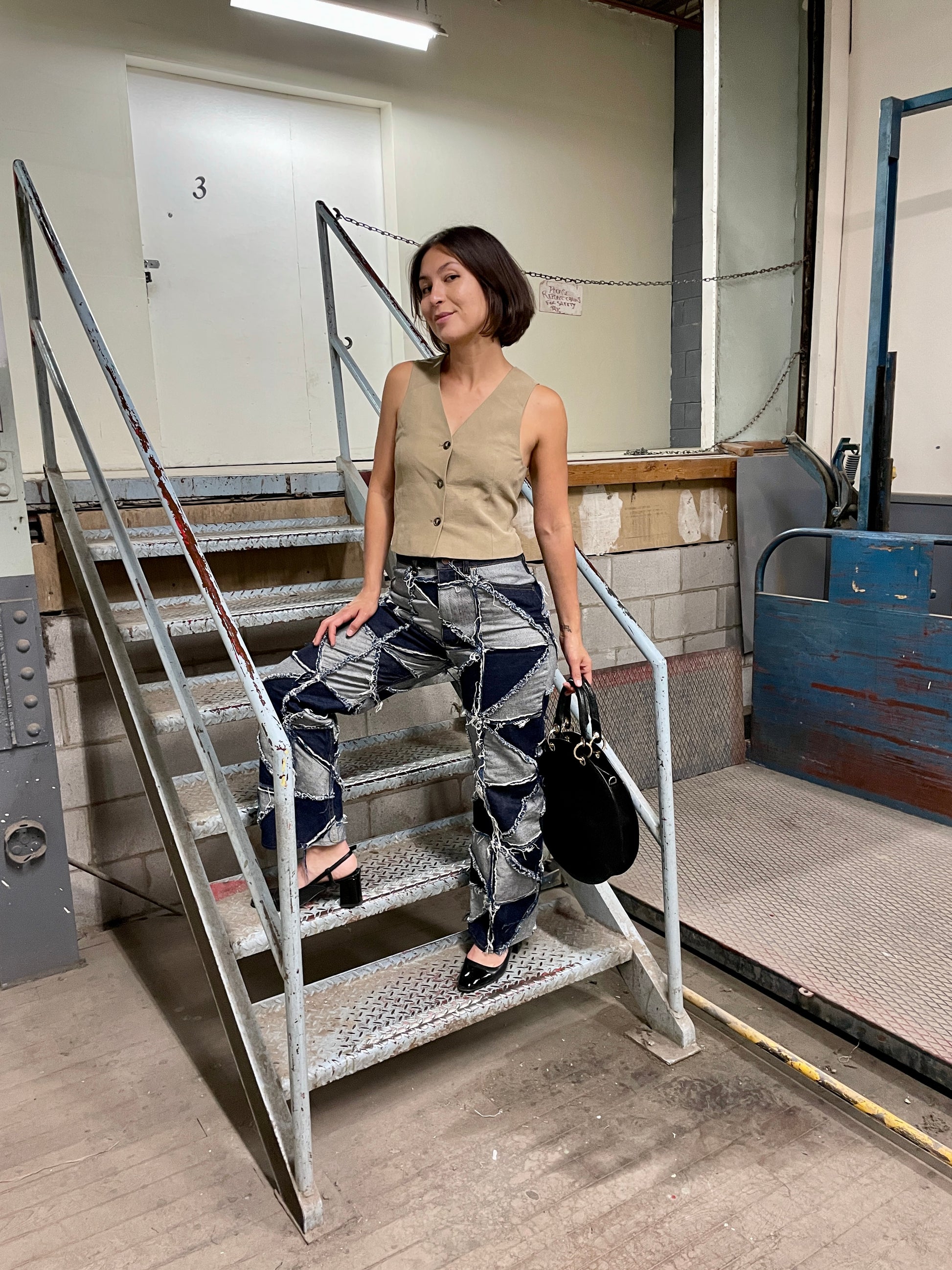 Created as a means to improve the circularity of our design process, and an iteration on the original Patchwork Pinwheel Jeans. They feature a straight leg silhouette, and dozens of triangular scraps of premium denim, stitched together, with a raw edge on the outside. The jeans have been washed and machine dried once before sale. Fraying will continue through the life of the product.
